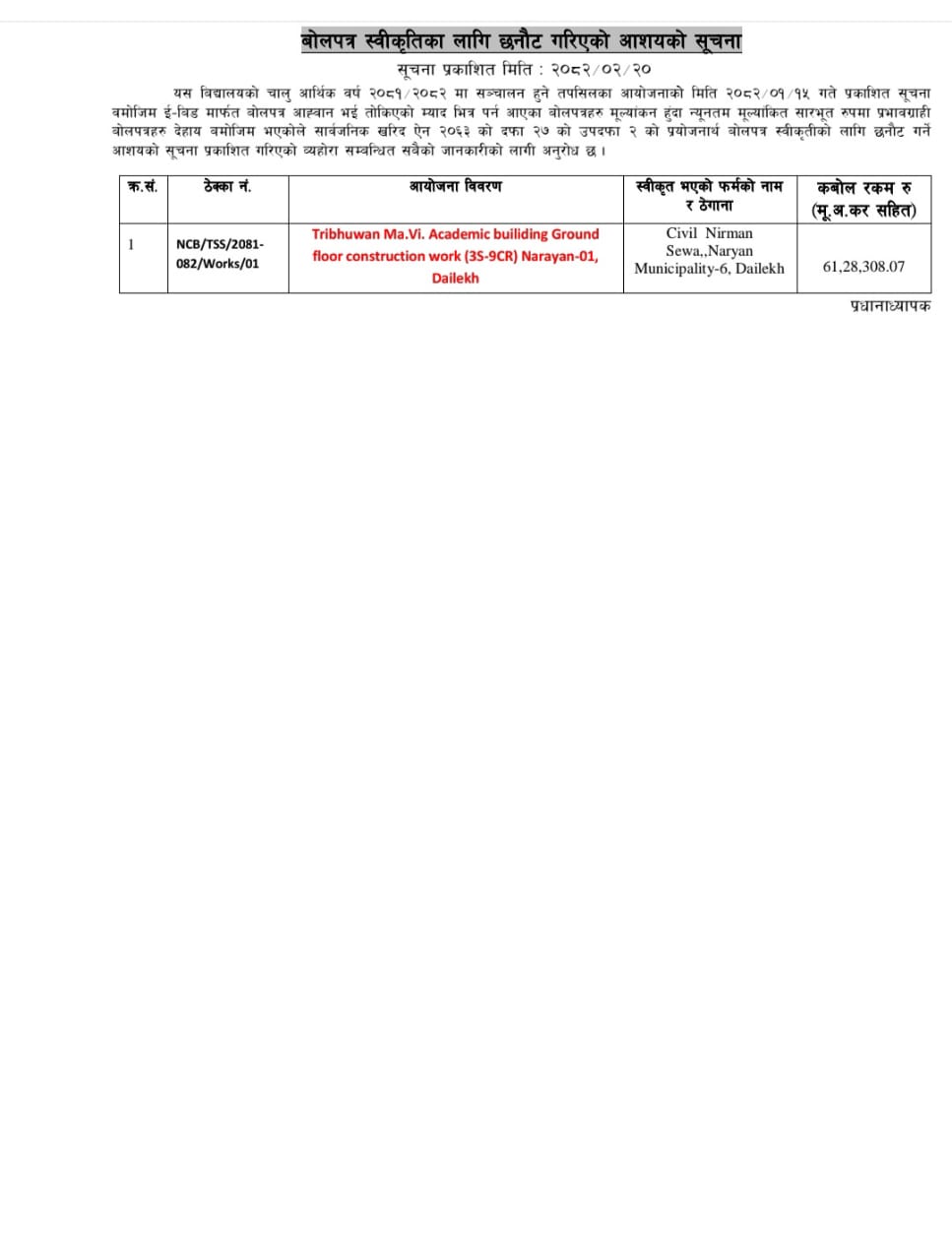 Tender notice