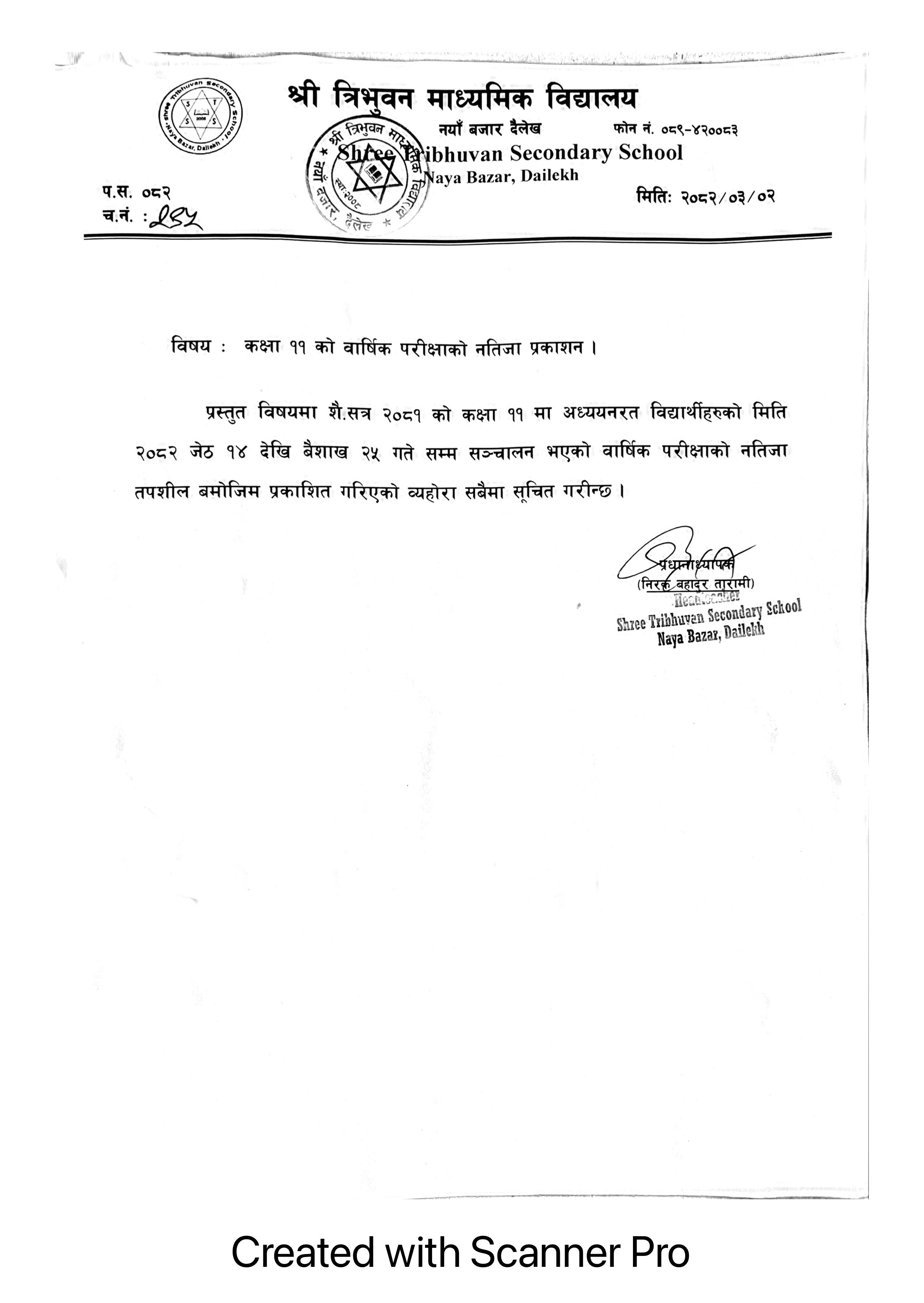Class 11 all faculties final Results 2081 published