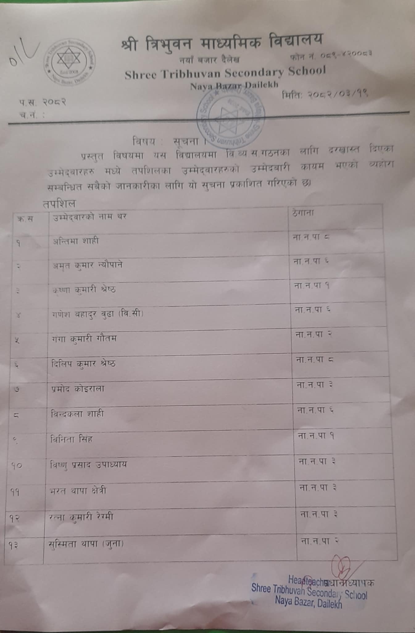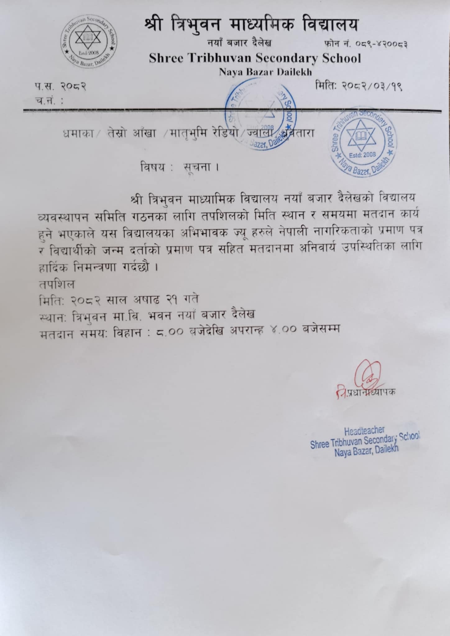 Election voting Notice for Management Team 2082